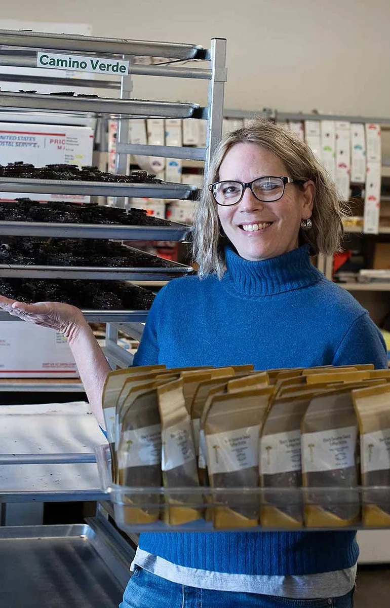 Doerr then took on a second recipe, NeoCocoa’s Black Sesame Seed Toffee Brittle. Until this time she had only been using Guittard chocolate. Then after she won the Specialty Food Association’s Gold SOFI Award, Dandelion approached her to make this toffee brittle for them—using their chocolate. Doerr was hesitant; she had developed this product with the Guittard chocolate in mind. However, using Dandelion’s Camino Verde 70% from Ecuador was a success and received its own Food Food Award in 2020. “It worked,’ Doerr says. “It’s different, it really changes the candy. We do taste tests with both chocolate and it’s like 50/50 which people like!”