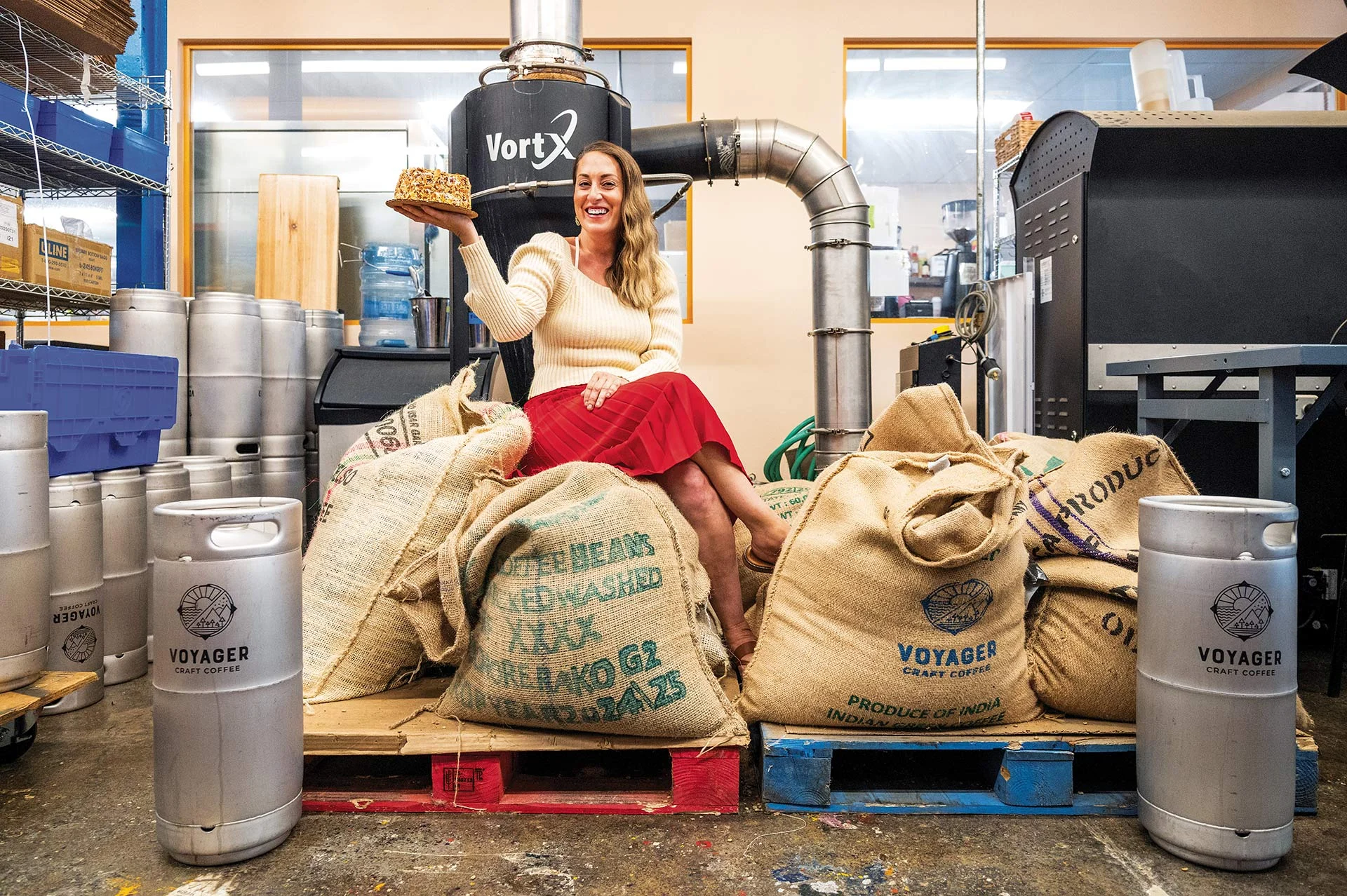 In 2015, Lauren translated her experience working with coffee into a travel-inspired drink menu she served from a trailer at farmers markets. “I just had this idea: Why don’t we start a coffee company? The way I can give back is through the community, being socially responsible, and also doing something I really love.” She founded Voyager with Sameer “Sam” Shah, who has a background in consulting. As the head of wholesale, Sameer oversees the bakery and roastery. He interacts with corporate clients and works with Lauren on community initiatives.