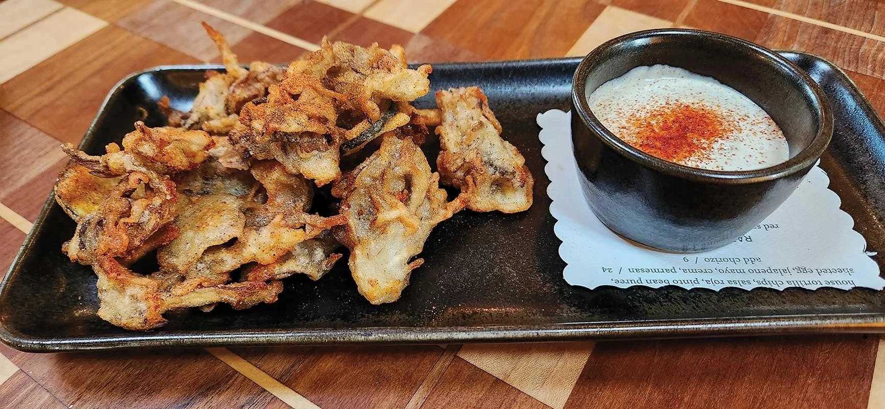 There’s an energy, there’s a vibe. It feels fun and it all looks delicious. Head through the front doors and you step into yet another universe. There’s an elegance here in the main dining room, which nearly spans a city block, and the ceiling is so majestically far above that you feel as if you aren’t enclosed in a building at all. The kitchen is open and a chef’s counter runs along it where diners can peer into the pristine space turning out plates in all directions. There are lush blue banquettes and checkerboard wooden tables that warmly accommodate every imaginable combination of guests, from business dinners to birthday celebrations to impromptu nights out.